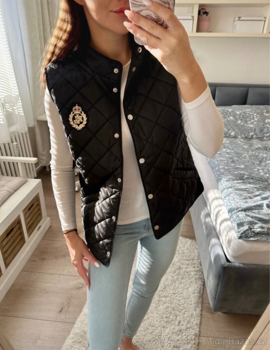 Prodám černou vestu RALPH LAUREN , velikost S . Nová včetně visačky . Samozřejmě orginál , velmi krásný kousek , stříbrné knoflíky . Lehoučká , ideální na jako . Rozměry : šířka přes hrudník 2 x 49 cm, délka 61 cm .