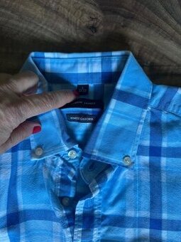 skoro nenošené, velice zachovalé, pod rukávy 55 cm, délka 69 cm. košile je více světlá, foto trochu kvůli světlu zkresluje, barvy modrá a bílá, Možnost osobní předání Praha Albertov nebo Stodůlky