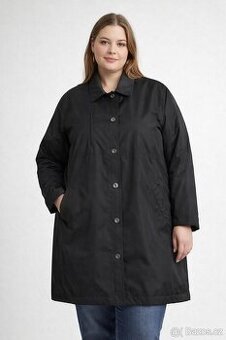 Cerna minimalistická delší bunda rovnější střih --vložka uvnitř hřejivá 50%vlna -v ramenou jemné vycpávky ,boční kapsy ,zapínání patenty -vel.50/52 kdy prsa měří 2x68cm,boky 2x70cm,délka 93cm-385kc