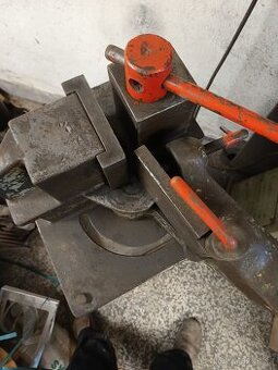 Masivní,litinová,ruční ohýbačka pásoviny a plechů.Hmotnost asi 100 kg vč.podstavce k přišroubování.Tovární výroba.