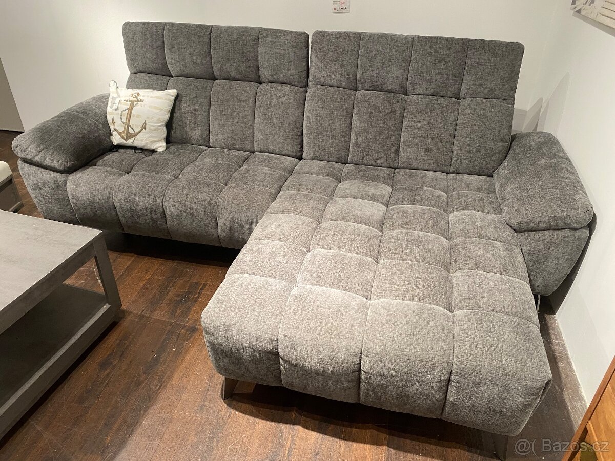Sedaci souprava rohova s jedním motorem na relaxaci nohou viz foto pouze vybalená nova tmavě šedárameno: 266/105-178 cm