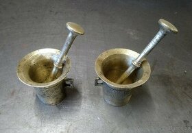 Prodám starý mosazný hmoždíř č.2. Výška 93,5 cm, průměr hrdla 10 cm, váha 850g (na fotografii vpravo). Místy stářím lehce poškozený od měděnky (měděnka je odstraněna).