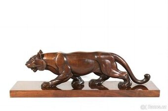 ponúkam na predaj art deco skulptúru tigra s kubistickými prvkami,vo veľmi peknom pôvodnom stave s patinou.bola zhotovená z teakového dreva,postavec je mahagón.jedná sa o pôvodný originál,vytvorený okolo roku 1930.skulptúra je signovaná G.Del Rosso.rozmery podstavca sú 66 x 13,5 cm a celková výška je 20 cm.po prijatí platby na účet veľmi dobre zabalené pošlem.možné osobné prevzatie v okrese Topoľčany.na prípadné dotazy rád zodpoviem.kontaktujte ma prosím cez formulár,číslo je vymyslené.ďakujem