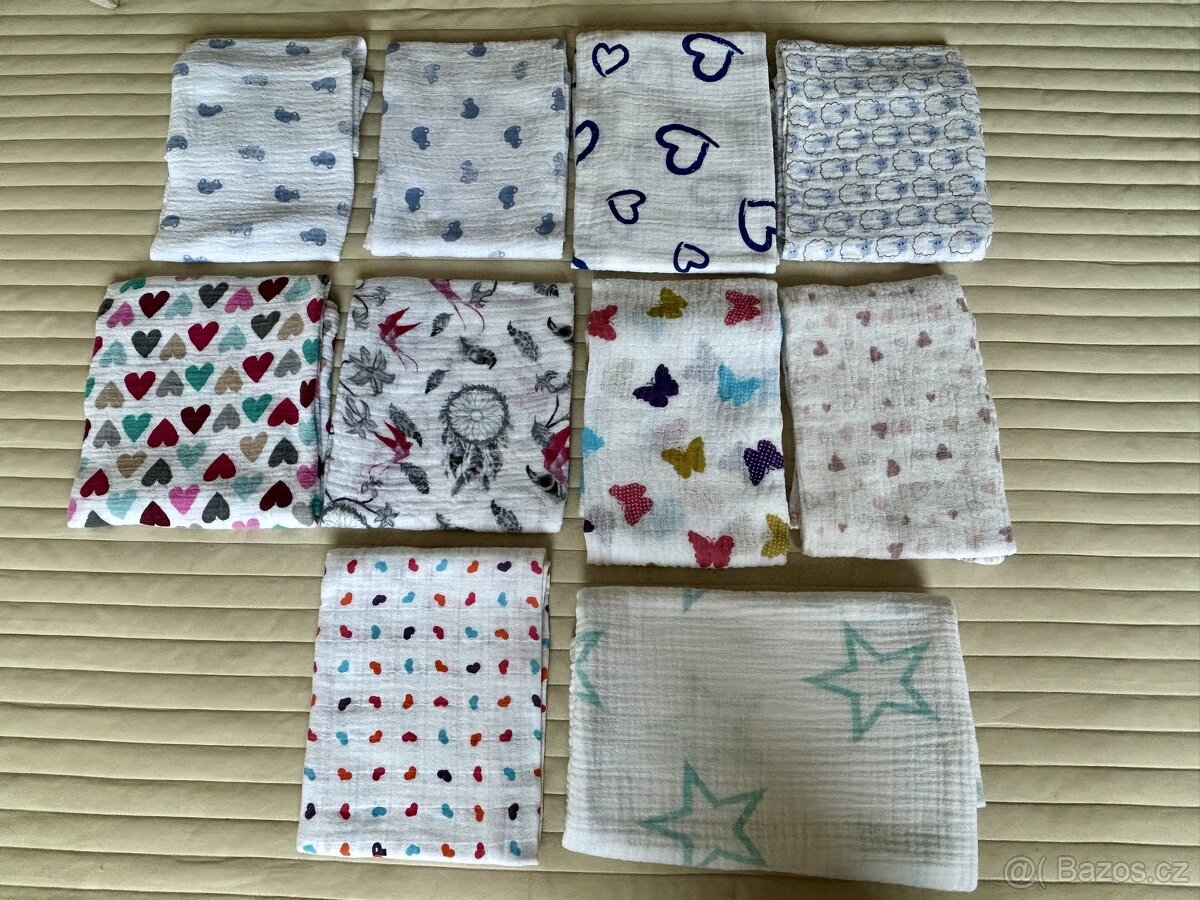 Cena: V textu. Dětské bavlněné pleny, nové, nepoužívané, pouze 1x vyprané. 9 x malá 70x70 cm - 30 Kč/kus 1x velká 100x110 cm (velké hvězdy) 110 Kč Osobní předání, Balíkovna, Zásilkovna.