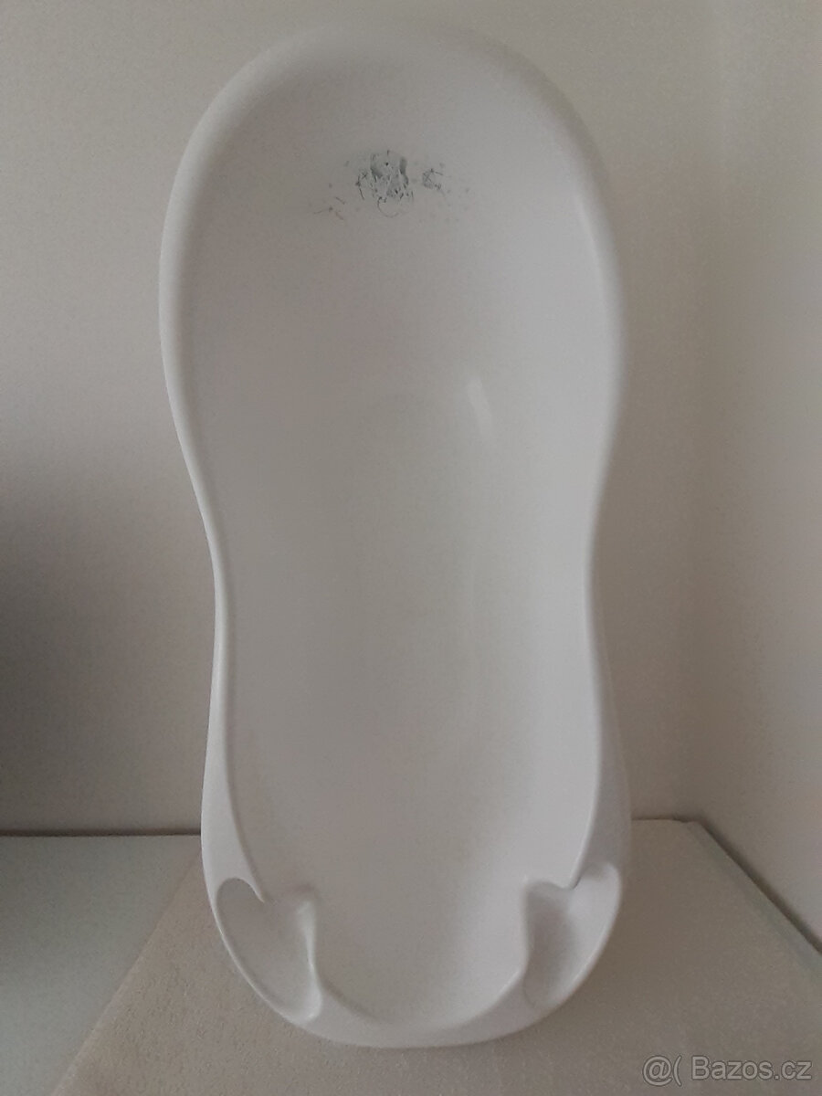 Dětská plastová vanička ve skvělém stavu, lehká, snadno omyvatelná, prostor na mýdlo a žínku, bílé barvy, vhodná od narození, nejdelší rozměr celé vaničky 98 cm. Osobní odběr na Praze 6 Bílá Hora.