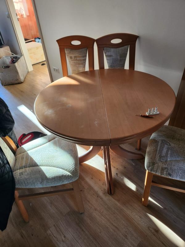 Prodám kulatý stůl. průměr 1m, po rozložení 2,8m ovál. Výška 90cm.