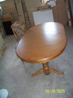 Prodám stůl. Stůl je v krásném stavu. Je schovaný ve skladu. nikde není poškozený ani nijak jinak poškrábaný. Stůl je rozkládací. Je to typ bud rustikál. Šířka stolu je 2 80 m. Původní cena stolu byla 16 800 Kč teď 8 400 Kč. Plus nebo i zvlášť prodám židle. máme jich celkem 8 kusů. židle jsou s typu bud masiv původní cena byla 3 900 Kč cena teď 3 200Kč. Židle nejsou součástí stolu.