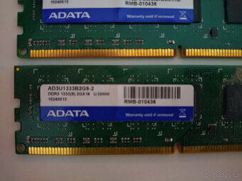 Prodám paměti viz specifikace adata AD3U1333B2G9-2. Ideálně osobní převzetí v Mostě. Případně zásilkovnou na dobirku.