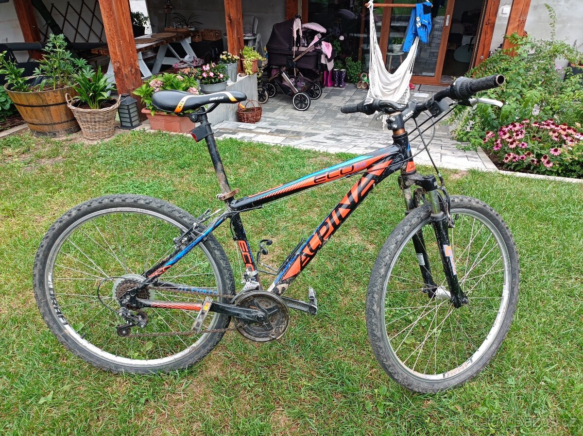 Prodám kolo Alpina, syn využil hodně, ale jistě ještě poslouží. Před prodejem dám do servisu, aby bylo všechno v pořádku. Odpružená přední vidlice. Osobní předání ve Skutči nebo okolí.