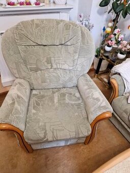 Křesla 2 ks - jako nová, masivní dřevo a látka