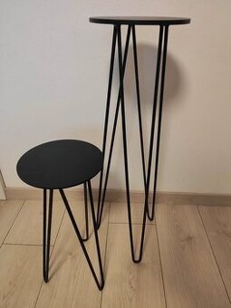 Stojany na květiny, prodám pouze jako pár, vyšší 74,5x24, nižší 44 x 20 cm. Jsou celokovové, podnoží i deska, a tedy poměrně těžké, stabilní. Kupované na Fleru, v perfektním stavu bez odřenin, krásné. Pouze osobní odběr.