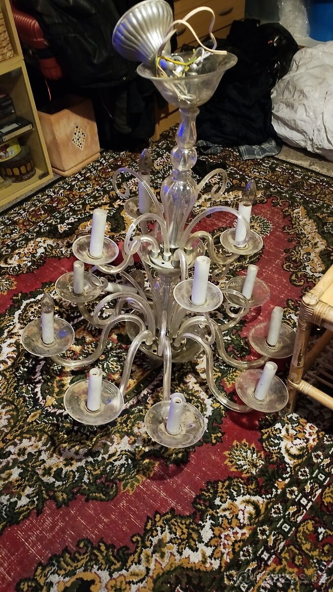 Prodám starožitný skleněný lustr. Cena: 7000kč Volat na číslo: 731 690 948 Možnost osobního předání v Praze.