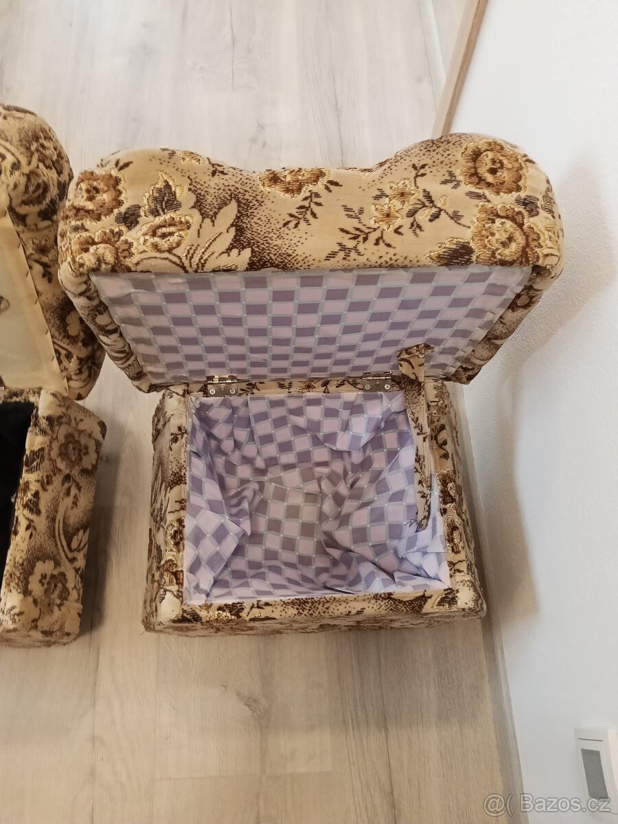 Prodej 2x taburet,oba za 1000kč, rozměr 38x48cm,s úložným prostorem.