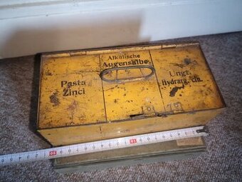 Cena: Nabídněte. Nabídky prosím e-mailem! Nevolat, pracuji. Děkuji za pochopení. Stav - bylo velmi zaprášeno otřeno jen nahrubo, aby byl vidět nápis. Potřebuje dočistit. Starý předmět pro sběratele, do muzea, na vystavení, dobová rekvizita... Kosmetické vady odpovídající stáří materiálu, které nejsou důvodem k nižší ceně, je to důkaz stáří a používání. Na boku zmáčknuté - mírně vyboulené - viz místo označené na snímku s metrem. Zavírání funkční. Rozměry jsou na dalších snímcích. Nejsem odborník, abych posoudil originál či kopii, to nechám na jiných. Za mě dle původu předmětu o stáří nepochybuji. Mám i starou dřevěnou krabičku na léky (patrně také Wehrmacht), vystavuji extra... Cenu nabízí kupující. Balíkovna do Balíkovny + 85 Kč, PPL na výdejní místa a BOXy + 86 Kč, Zásilkovna na výdejní místa + 95 Kč. Poslání na adresu od + 125 Kč. Dobírka NE.