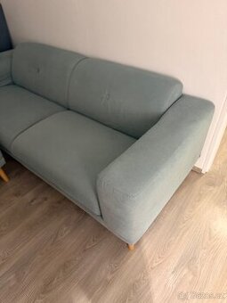 Kupováno na Bonami Tyrkysová barva Nepoškozená, stále krásný stav Prodáváme z důvodu většího gauče Taburet- výška 42,5, hloubka 57, šířka 83,5 Sedačka- hloubka 90, šířka 222 Původní cena 17 000,-