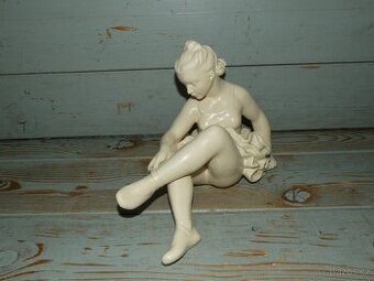 Krásná keramická plastika Baletka, výrobce Jihokera, 2. pol. 20. století.Výška 20 cm, délka 30 cm.Stav dle fota