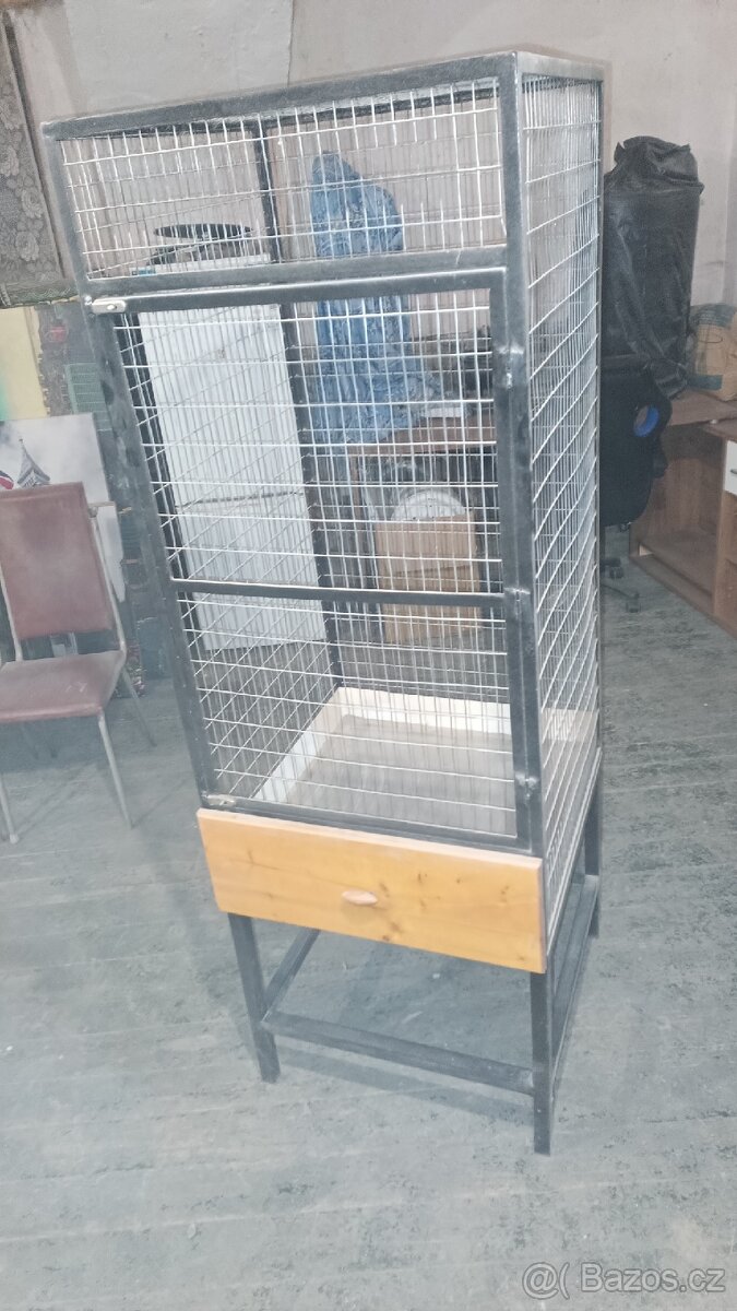 Prodám bytelnou klec dělanou na zakázku původně pro čincilu dá se použít i pro ptactvo je že 2 dílů spodní část nohou jde sundat,klec má výsuvný šuplík, rozměry výška celku 175cm a šířka, hloubka 60cm,pouze volat nebo sms