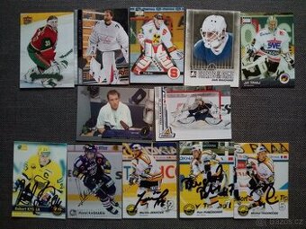 Hokejové karty NHL a česká liga. Nhl hráčů 41ks - z toho 5 brankářů, česká liga 9ks - z toho 2 brankáři, 5 karet s podpisem.