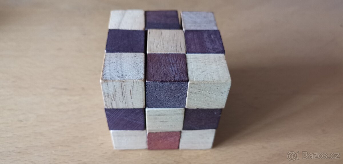 Dřevěná kostka had. Velikost cca jako rubikova kostka