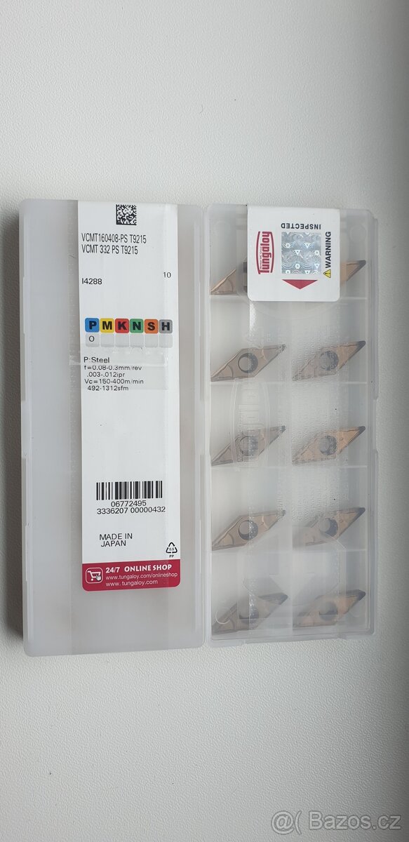 Cena: V textu. Predám nové originál zabalené plátky Tungaloy Vcmt160408-PS T9215 na oceľ. Je to originál Made in Japan,žiadne napodobeniny z Číny. Cena 20€ za krabičku. K dispozícii viac krabičiek. V prípade záujmu ma kontaktujte na mail.