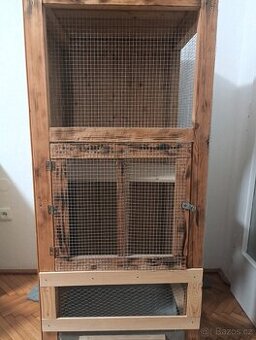 Prodám dřevěnou klec pro hlodavce/ voliéru s dvěma průchozími patry a výsuvným dnem pro snadnější čištění. Rozměry: výška 147 cm, šířka 67 cm, hloubka 66 cm Osobní odběr Praha 2 - Nové Město (v blízkosti Karlova náměstí) Při rychlém jednání sleva.