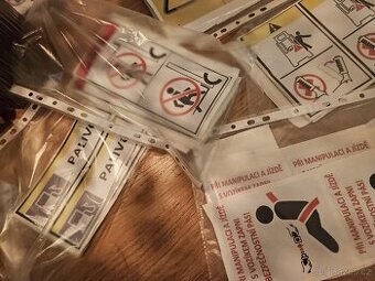 Nálepky bezpečnostního značení VZV, hydraulické ruky, plošiny, regálů atd. 30 kč/ks nálepky velké, 9 kč malé regálové, 12 kč velké regálové, 20 kč/piktorgram HR