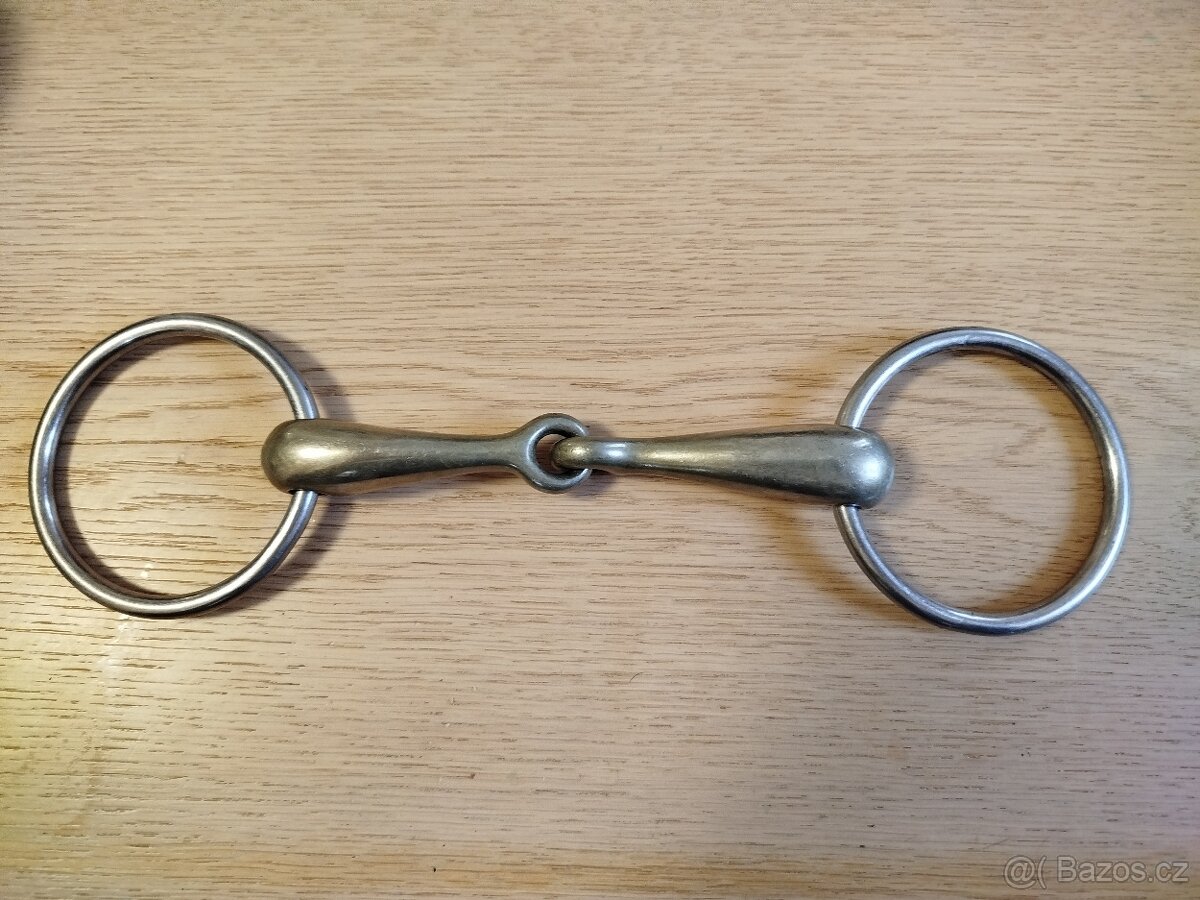 Prodám plné udidlo značky HS,šířka 13,5cm; tloušťka udítka u kroužků 2cm, u středu 1cm Slitina pro vyšší "chutnost".
