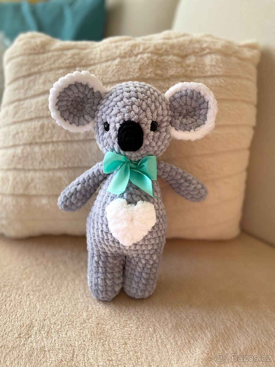 Ručně háčkovaná malá Koala, výška 25 cm, žinilková příze, bezpečnostní oči, plněno dut. kuličkovým vláknem. Čeká na kamaráda. Zasílám přes Zásilkovnu.