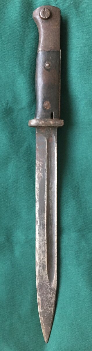 Německý bodák k98 Mauser z období 2.světové války, stiskátko pojistky funkční, nečištěno v nálezovém stavu - viz foto