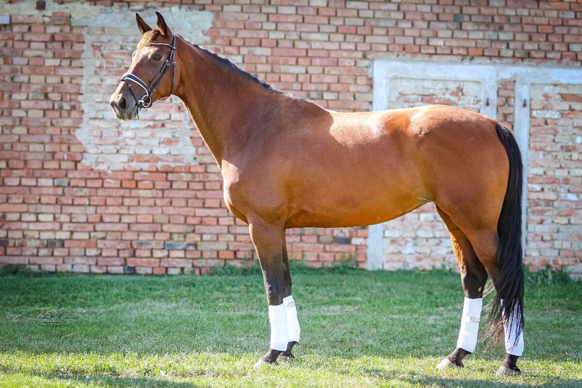 Cena: V textu. Prodám klisnu belgického teplokrevníka, z důvody odchodu dcery na vysokou školu. Věk 11 let, drezurní původ- po hřebci Armani, z Esmeralda DL. KHV - 176cm. S dcerou chodili drezuru stupně S. Klisna vhodná pro chov, vyjížďky, práci ze země - velmi hodná. Do sportu pouze pro velmi zkušeného a trpělivého jezdce - svéhlavá. Zdravá, rentgeny v pořádku, k dispozici. Cena 250 000. Při rychlém jednání sleva možná.