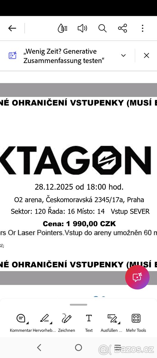 Cena: V textu. Predám 2 vstupenky na Oktagon 81. 100€ cena za oba.