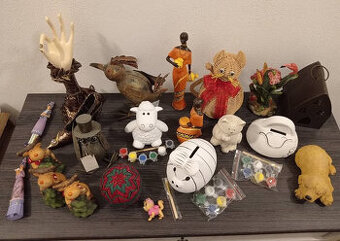 Velká většina dekorací je nová, nepoužitá, včetně původních obalů. Osobní odběr u Poličky nebo Balíkovna za 75 Kč nebo Zásilkovna ty 89 Kč. Zatím píšu ceny, změřím na dotaz a budu postupně doplňovat. Ruka na prstýnky 27 cm - nová, 199 Kč. Kovový pták v rustikálním stylu. Sice nové, ale vrchní zobák ťuknutý - 90 Kč. Stojící afričanka 24,5 cm - Nová, 129 Kč. Klečící afričanka 14 cm - Nová, 119 Kč. Pedigová kočka, ruční práce - 150 Kč. Plameňák z polyresinu 17,7 cm - nový, 129 Kč. Kovová chaloupka na svíčku 14,8x10x10 cm - nová, 169 Kč. Levandulové děti (vlevo) z polyresinu - obě dohromady za 129 Kč. Střevíček ne prstýnky - 99 Kč. Sice nový, ale od dodavatele má okraj trochu ošoupaný. Kovový sedící pták s kloboukem - nový 145 Kč. Vánoční patchwork koule na zavěšení - 50 Kč. Sádrové pokladničky (ovce, kabelka) k vymalování každá za 99 Kč. Včela prodaná. Keramická kočka 13,6 cm - 99 Kč. Vánoční sob za 35 Kč. Mám tři, cena za kus. Polyresinový spící pejsek - byl se zvukem. Nemám ba