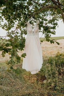 Cena: V textu. Zdobené princeznovské svatební šaty se závojem ze salonu Elody, model Stacy 313. Ušité na míru (výška 169 cm, běžná konfekční velikost 38/40).Nošeny ve svatební den, poté zaslány do Elody k profesionálnímu vyčištění (5000Kč) o čemž mohu doložit certifikát. Původní cena 34 980 Kč, nyní prodávám za 15 500 Kč