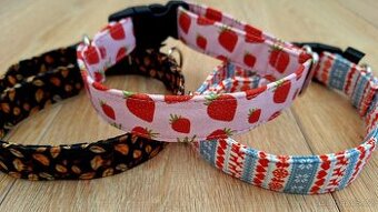 Nadšenci do psí módy, zbystřete! Mám na prodej pár nádherných obojků od české značky Gingerboy – ručně šité, kvalitní, lehké, ale zároveň hodně vydrží (materiál: voděodpudivý softshell s černou plastovou sponou). Všechny jsou pohodlné a originální vzory přímo k nakousnutí: Jahoda – roztomilost sama. Zlaté listy – jemná elegance. Norský vzor – severské hygge. Rozměry/velikost M: nastavitelná délka 30 - 45 cm; šířka 2,5 cm. Ve skvělém stavu - jako nové, látka není ošoupaná, zapínání drží perfektně! Prodávám z důvodu přechodu na větší velikost. Cena dohromady za 3 kusy: 1.149,-Kč. Cena za kus: 449,-Kč.