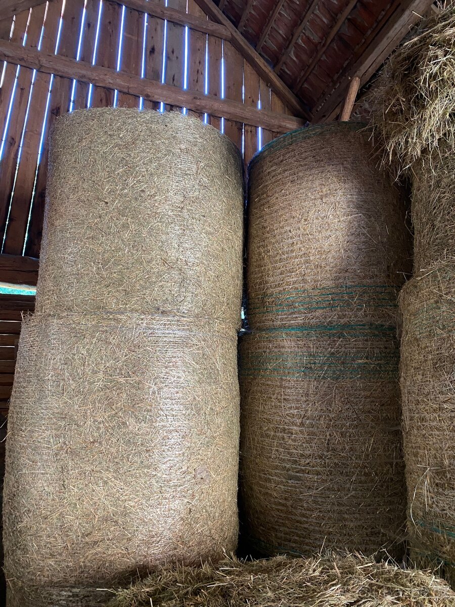 Prodám letošní nezmoklé seno v kulatých balíkách. Skladováno pod střechou. Lisováno lisem s variabilní komorou. Při odběru do 2ks nakládka + 400 Celkem 8ks Rozměr 90-100cm