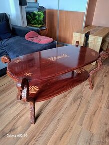 Predám ručne a veľmi detailne vyrezávaný konferenčný stolík z dubového dreva,odtieň mahagon na tému iluminati rozmery 110x54,výška 56cm.cena 400e