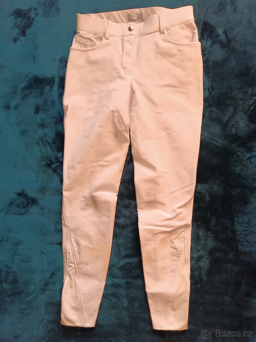 Bílé rajtky HKM, vel. 36...grip na kolenou... trochou začerněná kolena od sedla, trochu zažloutlé nohavice od chapsů, při používání nejde vidět...jinak v super stavu, kvalitní materiál...