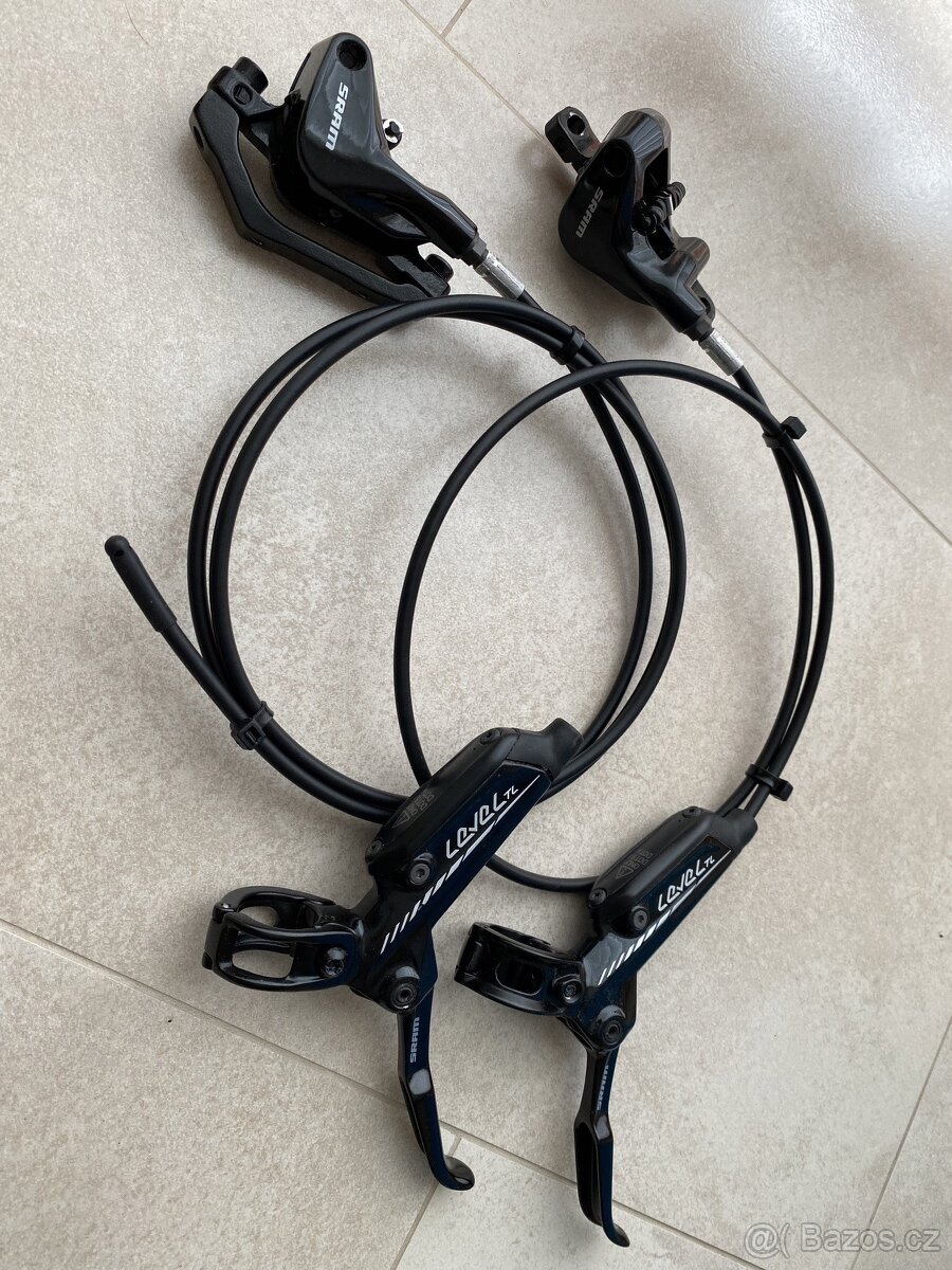 SRAM LEVEL TL brzy MTBsada brzd SRAM LEVEL TL , najeto 500km, délka přední hadice 73cm, zadní 138cm ( rozpojena, včetně adaptéru post-mounth)