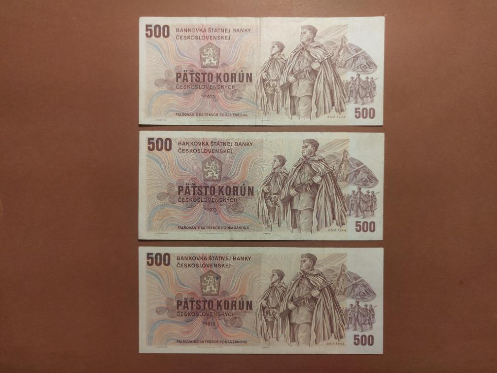 Nabízím bankovky 500 Kčs z roku 1973. Pěkné stavy viz fotky. Kus za 450 Kč, při koupi všech platí cena jen 350 Kč za kus. Poštovné obyčejně 40 Kč, doporučeně za 79 Kč, cenné psaní za 99 Kč. Osobní předání možné v Praze 4 Krč.