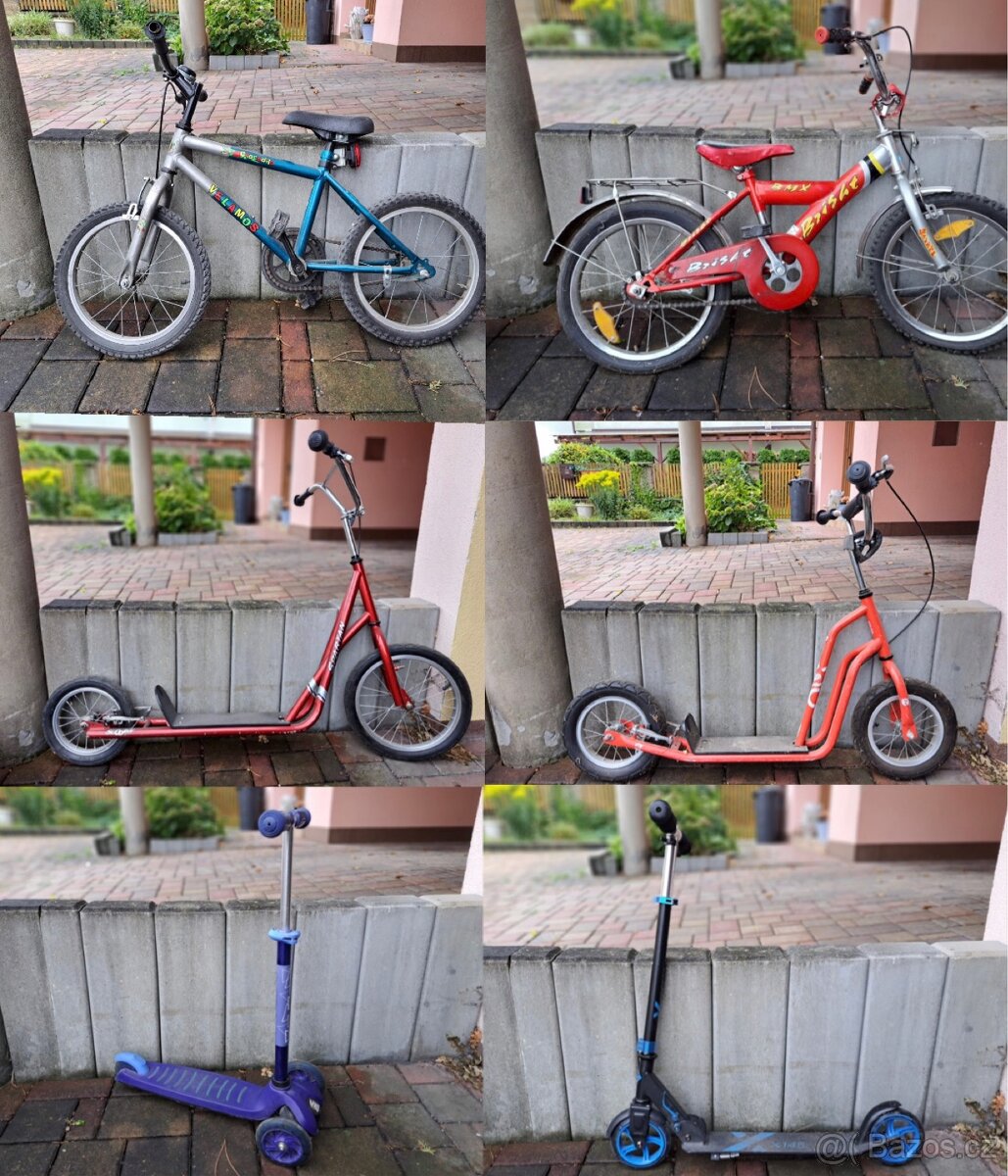 Dobrý den, vyklízely jsme garáž a našli tam po mém bratrovi nějaká kola a koloběžky. Modré kolo se zvonkem- 200 Kč Červené kolo se zvonkem- 200 Kč Červená koloběžka s brzdou- 300 Kč Oranžová koloběžka s brzdou- prodáno Modrá koloběžka tři kola- 200 Kč Modrá koloběžka- 300 Kč Skoro u všeho bude nutný servis, např. brzdy budou ve špatném stavu.. na ceně se můžeme ještě domluvit :) V případě odvezení všech kusů = sleva Pokud máte zájem, pište na telefonní číslo. Pouze osobní předání.
