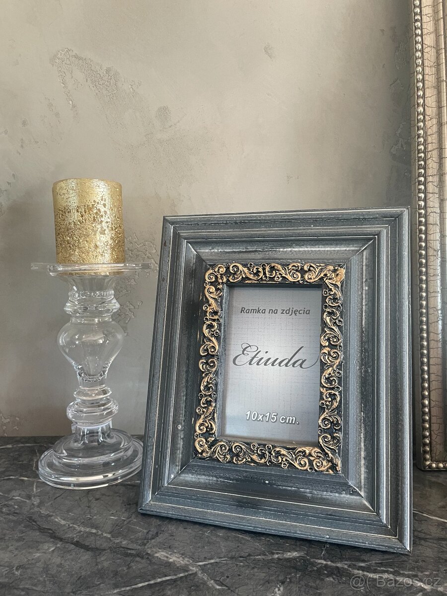 Dřevěný stylový fotorám se zlatou patinou na fotografii 10x15cm cena 490 kč