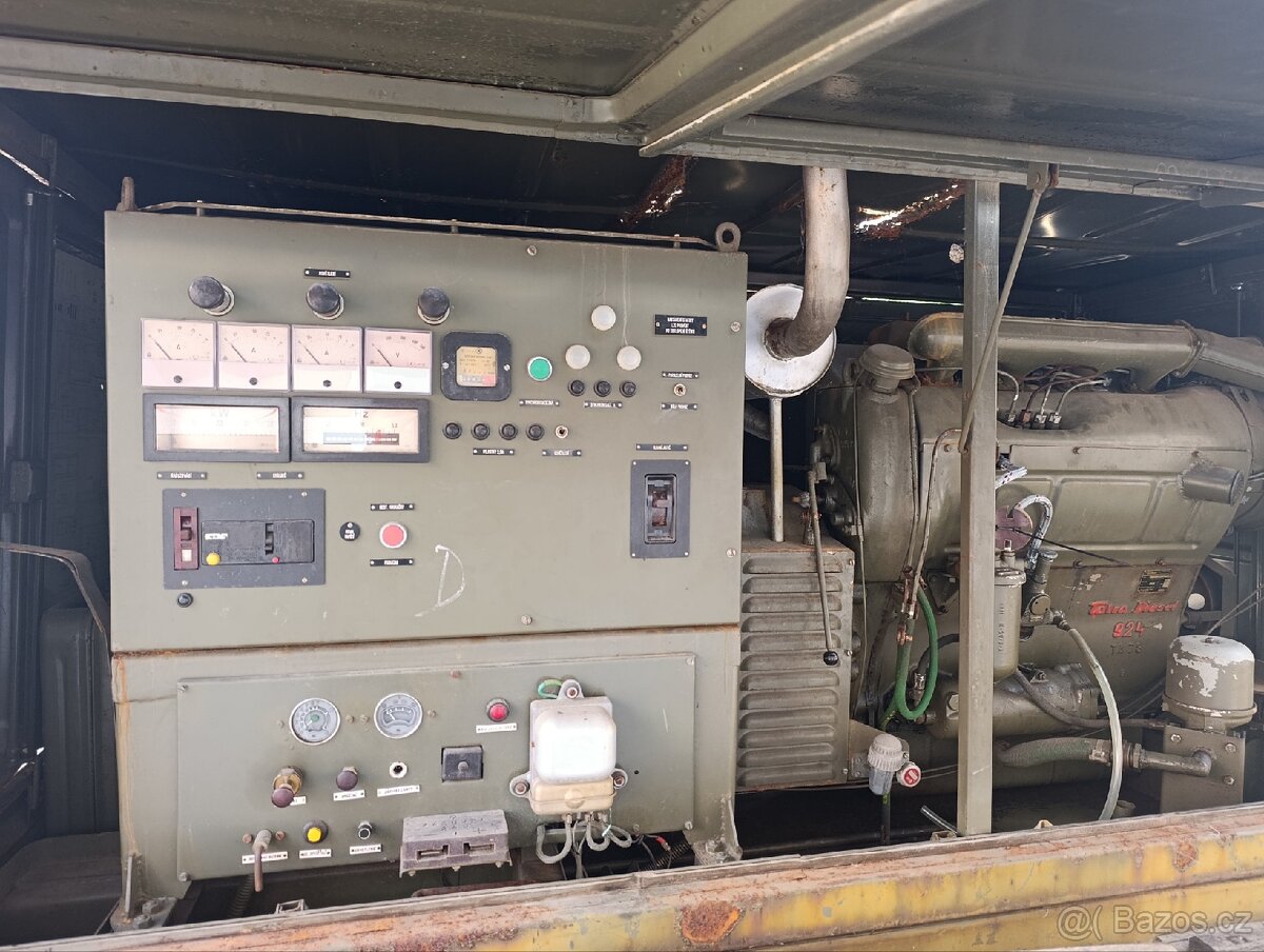 Prodám vojenskou elektrocentrálu V původním stavu najeto pouze 93 Mu Motor Tatra 4 válec Centrála je zprovozněna a byla na ní udělaná revize Cena 60000 bez DPH Generátor, centrála