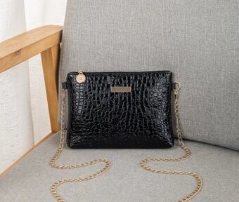 Krásná černá kabelka imitace krokodýla, lakovaná, NOVÁ