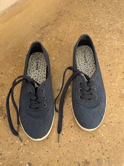Prodám dámské boty tmavě modré barvy se vzorem kytiček. Velikost 39. Cena 170kč. Osobní předání v Brně nebo Zásilkovna.