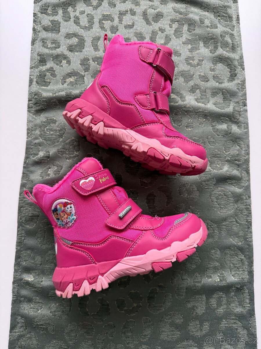 Prodám dívčí zimní boty Paw Patrol s membránou DEI tex, v krásném stavu, téměř nenošené, velikost 28. Lze zaslat zásilkovnou nebo balíkovnou.