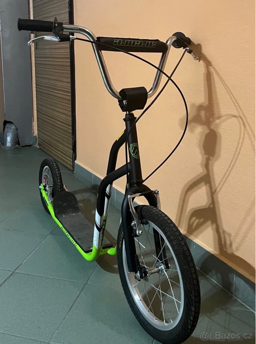 Prodám koloběžku Arcore SHORTY pro děti 8+ let, nosnost 100 kg barvy: černá, zelená, bílá velikost předního kola: 16 a zadního kola: 12 koloběžka je v dobrém stavu, párkrát se na ni jezdilo prodejní cena: 1790 Kč