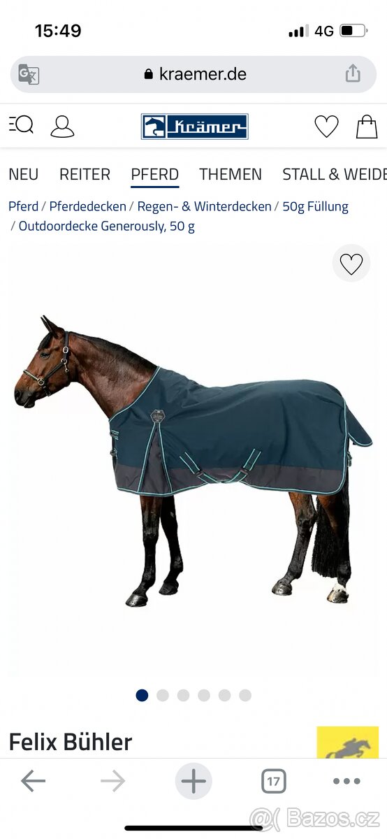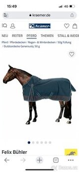 Deka velikost 155 cm, 50g, 1200D material. Nevyprana, ale bez poškozeni. Pc 3500,- kupovaná v Kraemeru. Dobre sedí na koni, bohužel mi z ni vyrostl. foto ilustrační