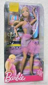 BARBIE Tanečnice BARBIE - Asst.R4226 #T2691 nerozbalená v originál obalu Jde o panenku Barbie I Can Be a Ballroom Dancer (katalogové číslo T2691) z roku 2009. Panenka je součástí řady "I Can Be Anything" od společnosti Mattel, která podporuje ambice dívek. Má blonďaté vlasy a na sobě fialové a růžové taneční šaty s volány. Součástí balení je kód, který odemyká online obsah s tematikou kariéry. Panenka je vyrobena z plastu a je vysoká 12 palců.