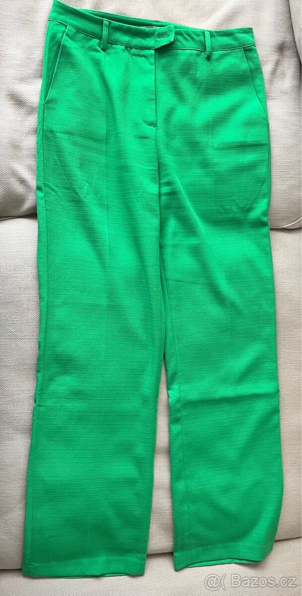 Prodám kalhoty Orsay. Velikost 40, zelená barva. Top stav, bez vad, viz foto. Šířka v pase 41cm, šířka boků 56 cm, depilace vnější nohavice 113cm. Cena 250,- Kč.