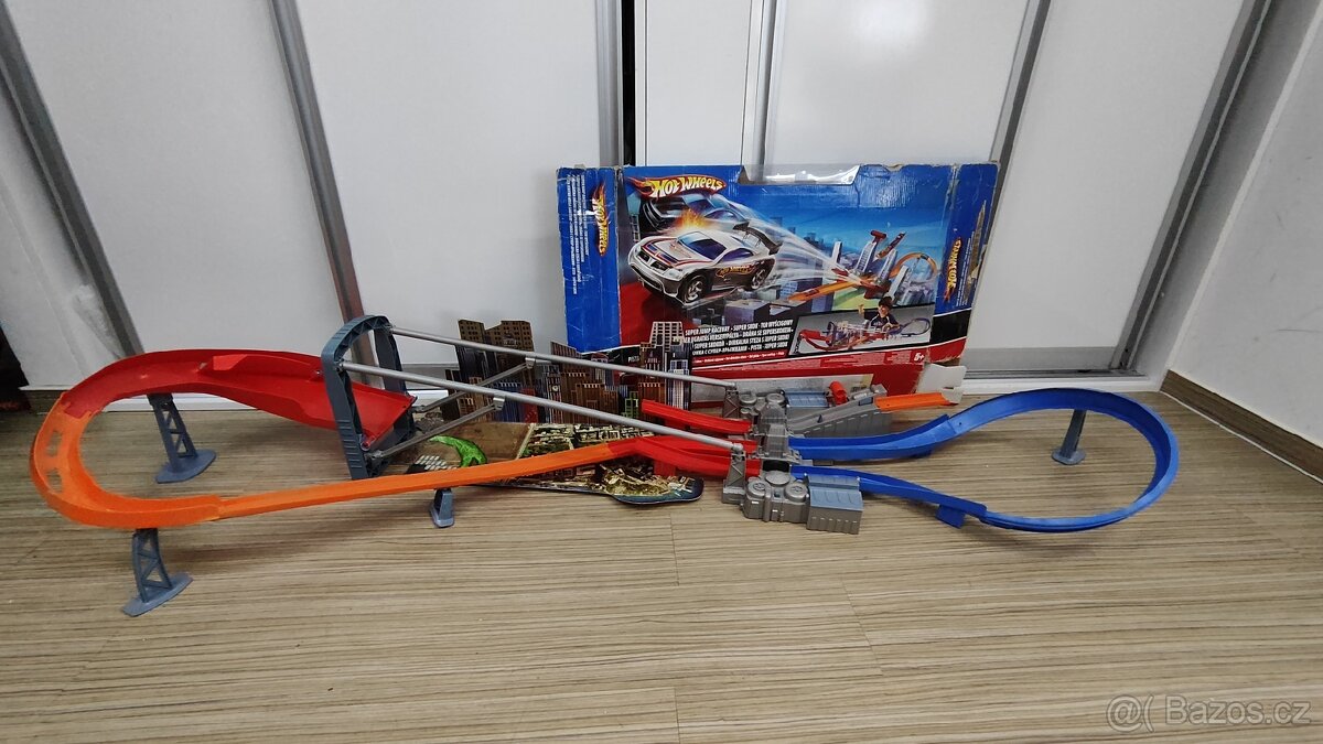 Prodáme velikou dráhu Hotwheels SUPERJUMP s dvojitým pohonem. Má něco za sebou, ale plně funkční a kompletní, včetně pozadí města.Na náš pokojík už je moc velká a uvolňuje místo. Je k ní i krbaice. Předání Brno - Starý Liskovec nebo Komárov.